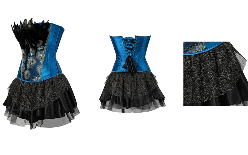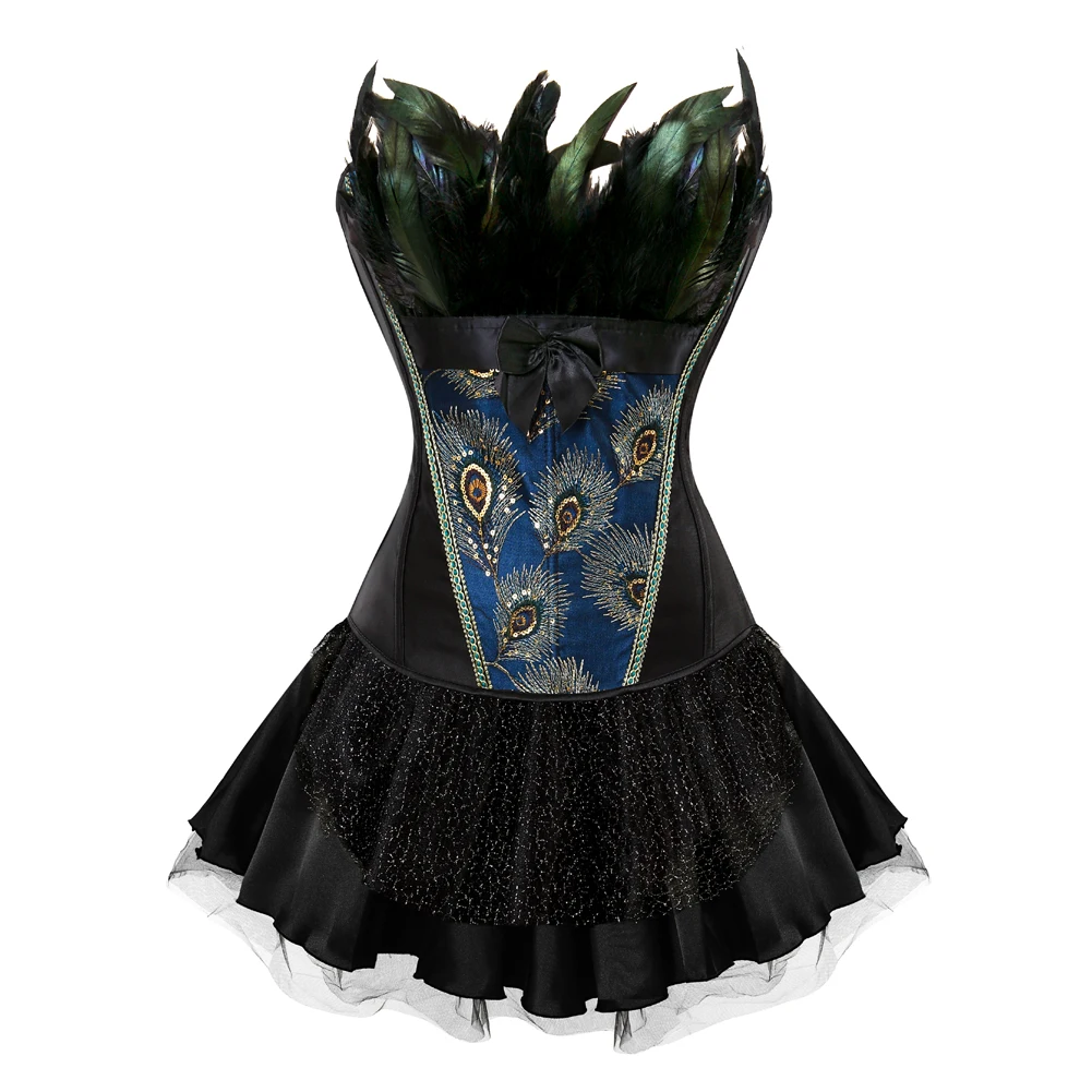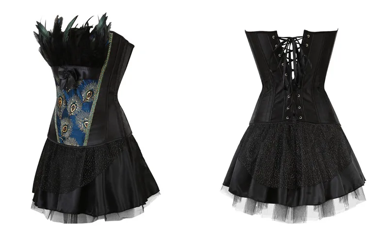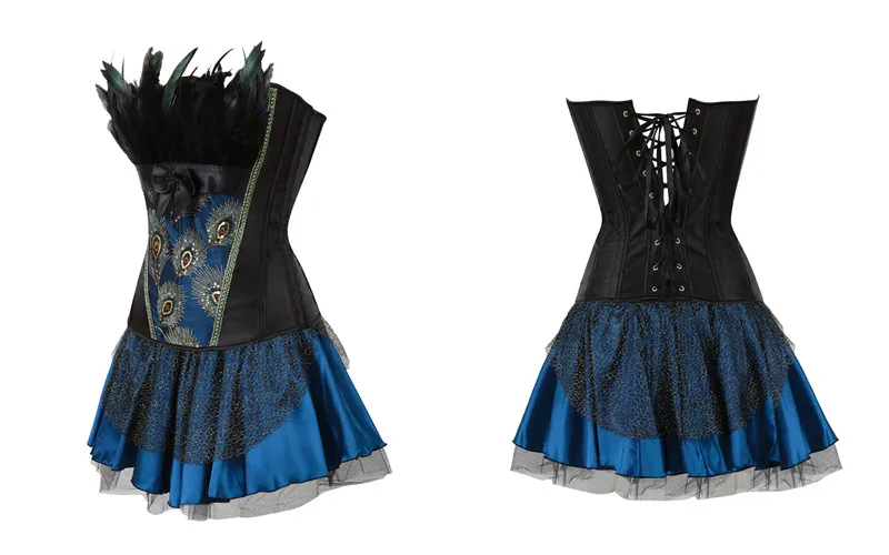 Сексуальный готический стильный комплект из Бюстье и юбки с вышивкой Павлин Принцесса эротический корсет юбка с перьями атласный корсет платье