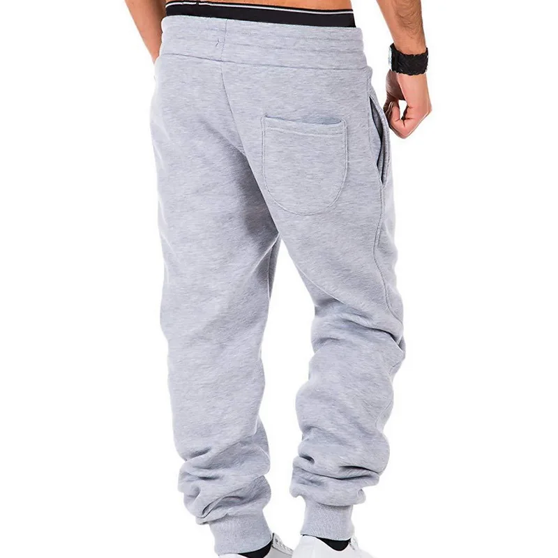 Мужские повседневные свободные спортивные брюки, мужские Штаны для фитнеса и бега на завязках, однотонные длинные брюки для спортзала и бега