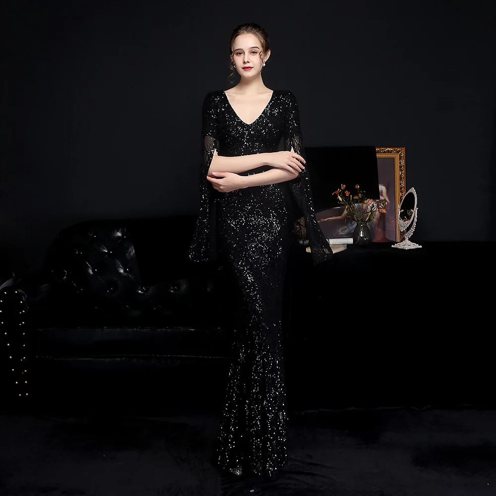 2022 белое Элегантное Вечернее Платье макси с золотыми блестками вечернее платье женское платье с длинным рукавом платье для выпускного вечера