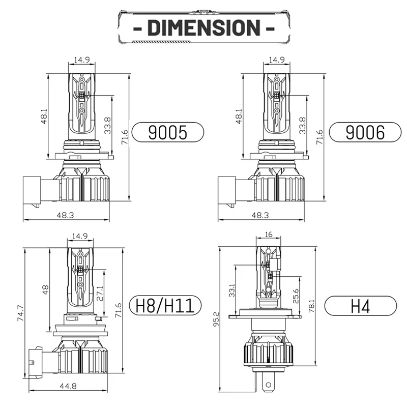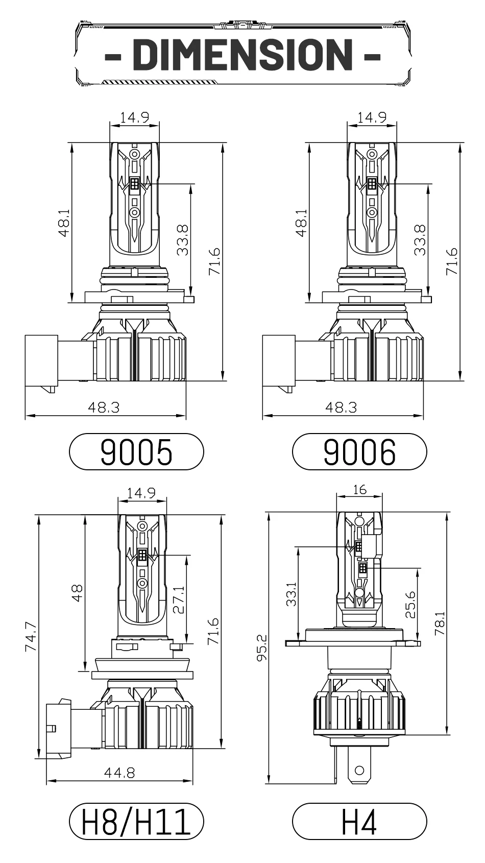 H7, H8/H9/H11/H16JP, 9005/HB3,9006/HB4