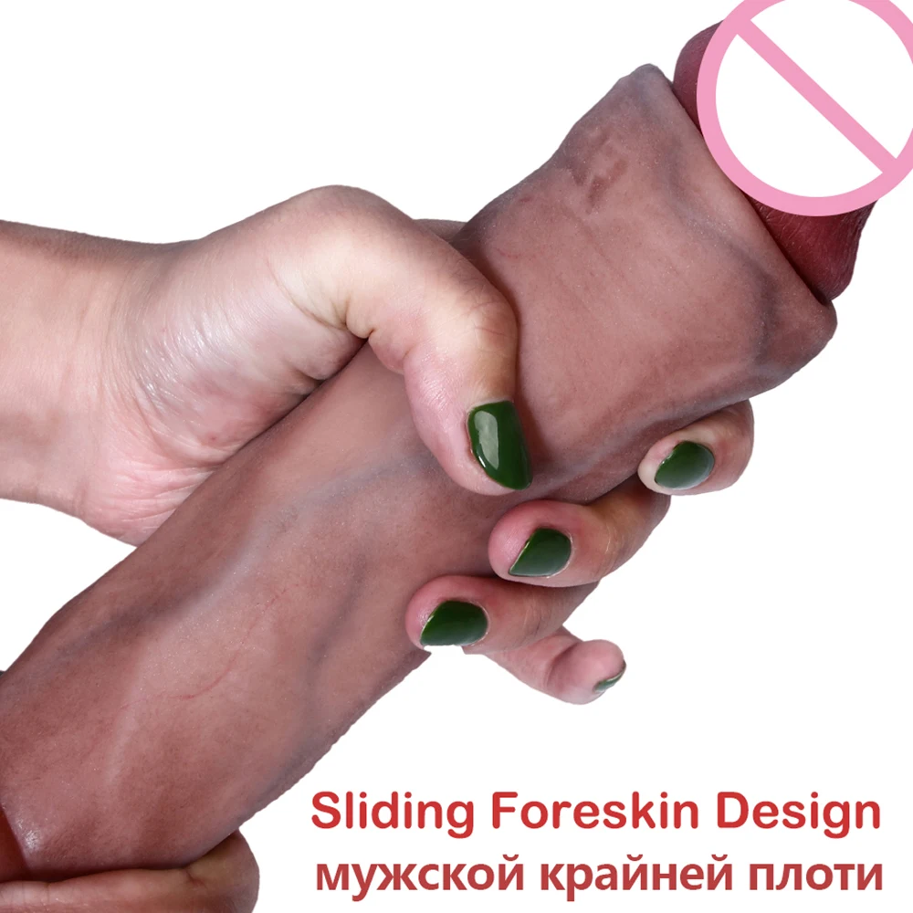 Огромный фаллоимитатор реалистичный раздвижной крайней плоти точки G Клитор стимулирует пенис мягкий дилдо большой член интимные игрушки для женщин
