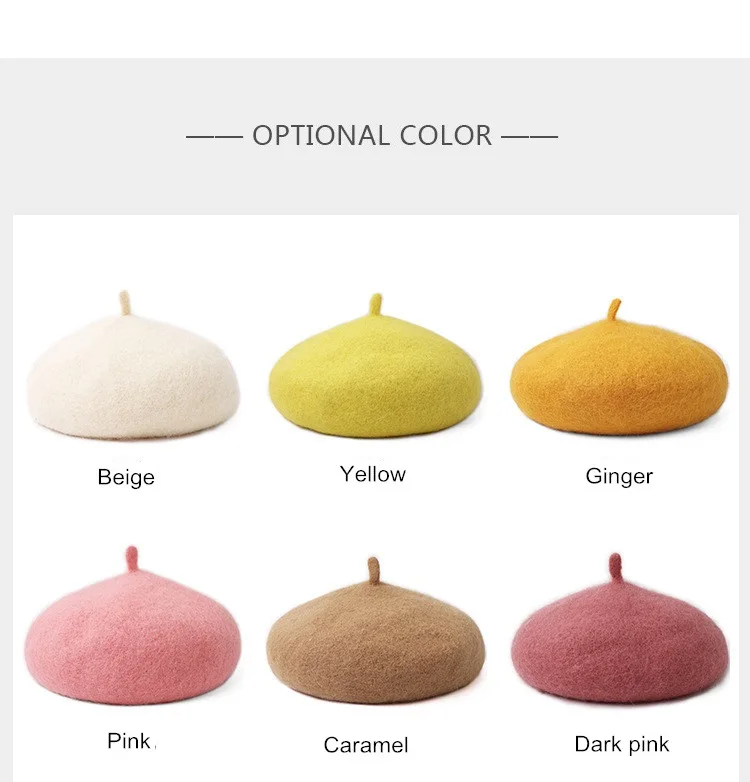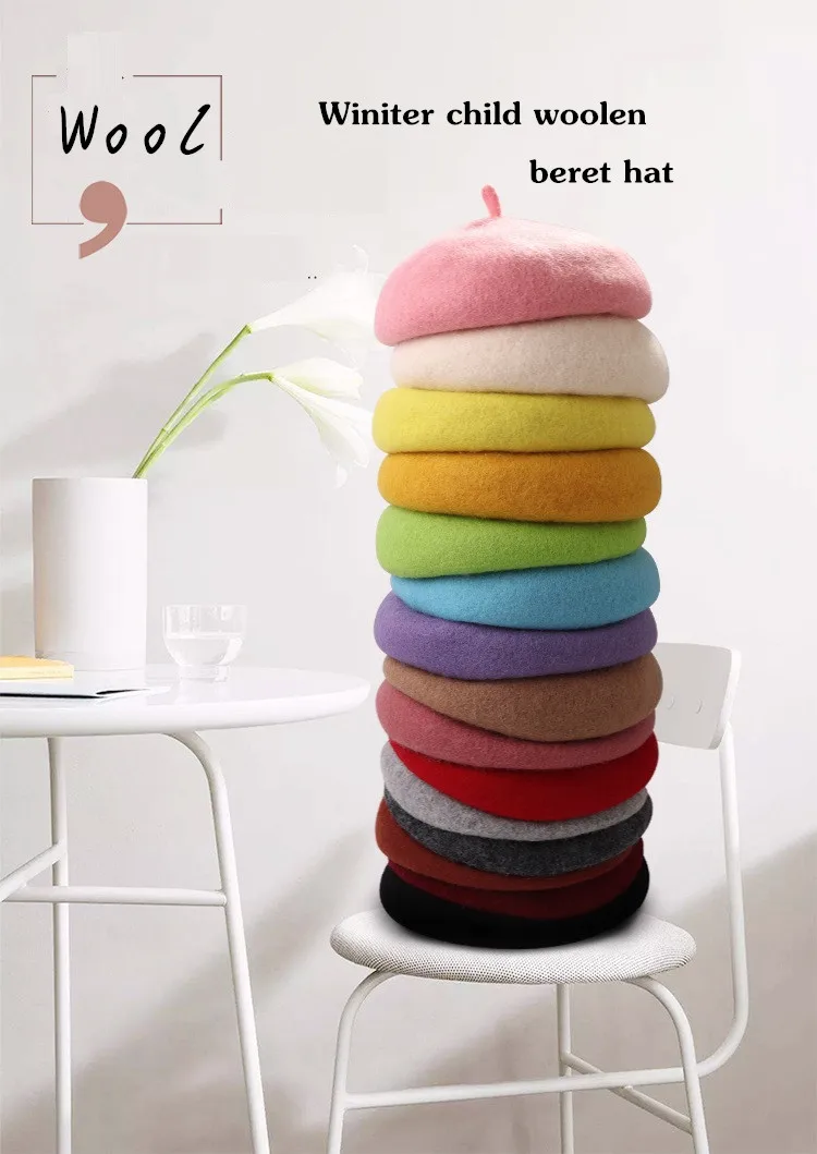 Имя:Детский берет из От 3 до 8 лет шерсти, зимняя плотная теплая детская шапка художника, Шапка-бини с тыквой французского художника