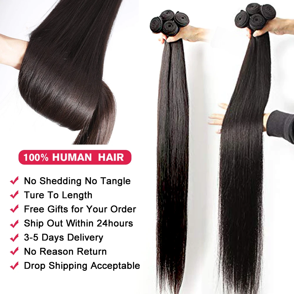 Прямые человеческие волосы, пряди Remy, бразильские волосы, прямые волосы, плетение, пучок, 1 шт., пряди человеческих волос с кружевной фронтальной застежкой