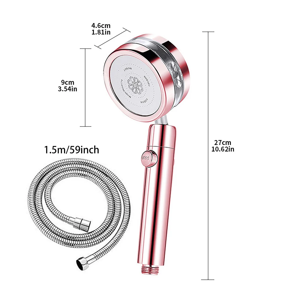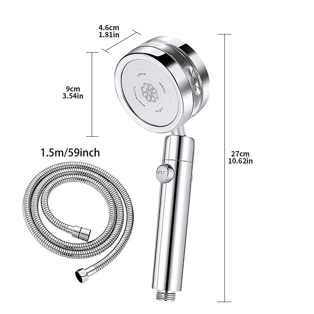 Цвет: серебро, золото, розовое золотоОсновной Материал: АБС-пластикРазмер:Длина шланга: 1,5 метровДушевая головка: 27*9 см/10,6x3,5 дюйма