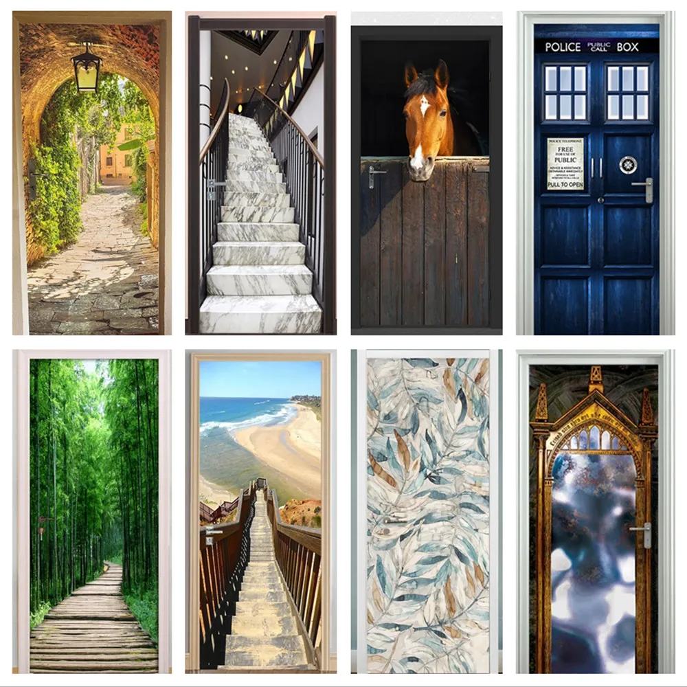 3D наклейка на дверь лестницы для спальни, гостиной, виниловые водонепроницаемые наклейки для домашнего декора, художественная настенная роспись, самоклеящиеся обои, шкаф
