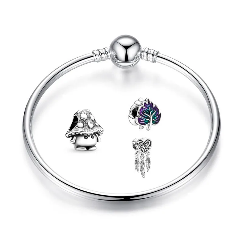 Бусины-шармы женские из серебра 100% пробы с цветными листьями