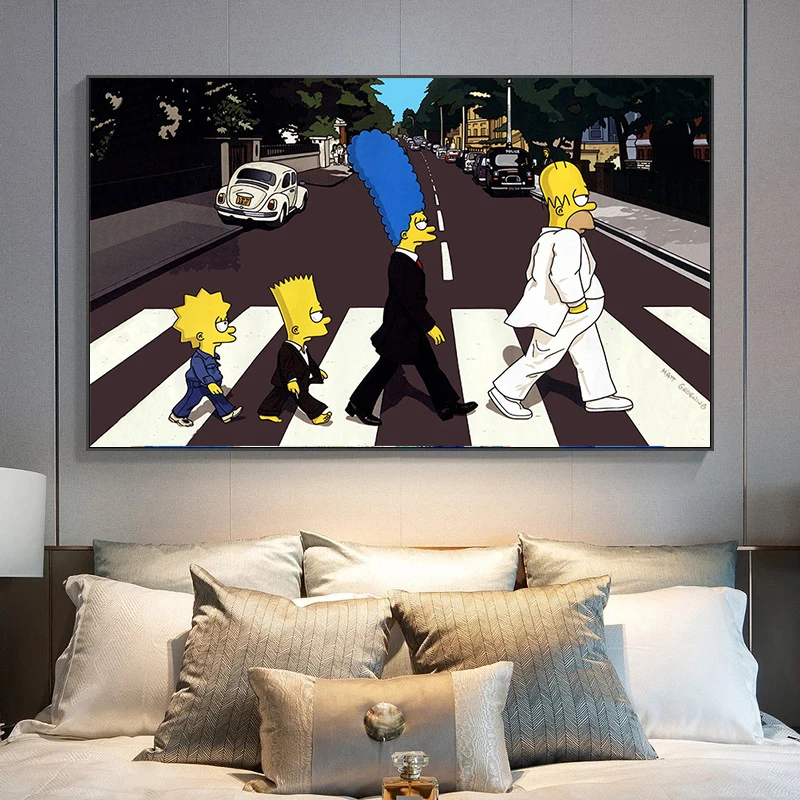 Современное изображение Simpsoning Abbey Road, Барт, Гомер, Мардж, холст, настенная живопись, искусство стен для гостиной