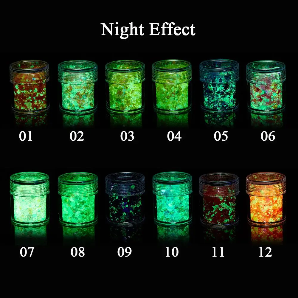 Светящаяся пудра для дизайна ногтей, блестящий неоновый шестигранный флуоресцентный блесток для искусственных украшений для маникюра