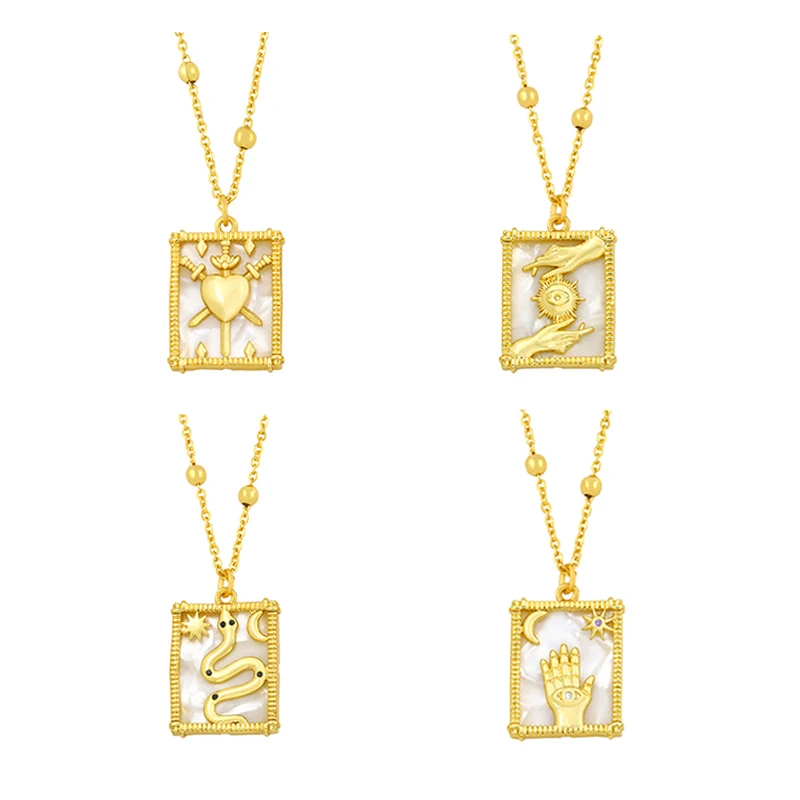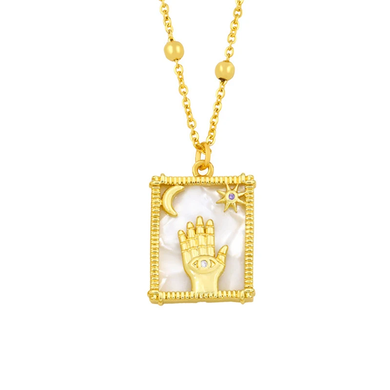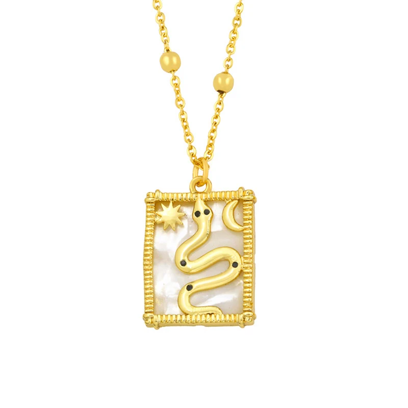 Цепочка на шею с квадратным кулоном в форме Луны, звезды, Луны и змеи, золотого цвета