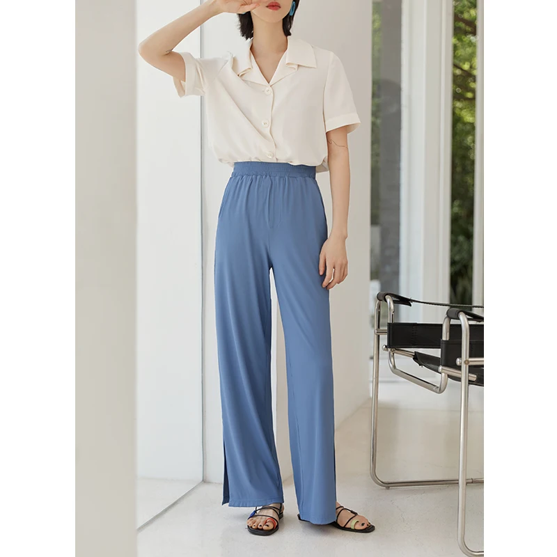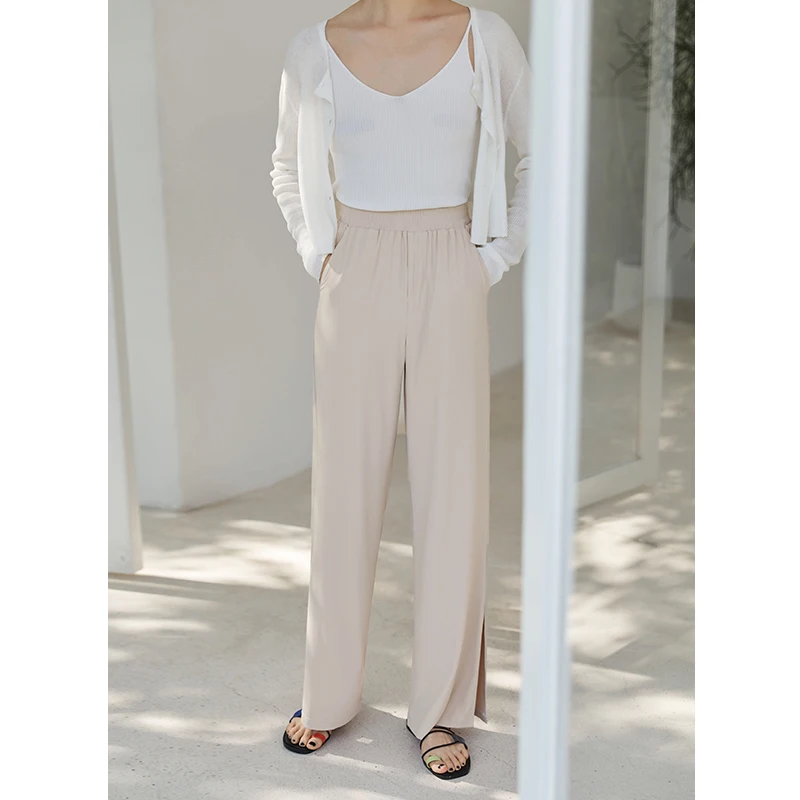 ZIQIAO женские широкие брюки с эластичным поясом и разрезом