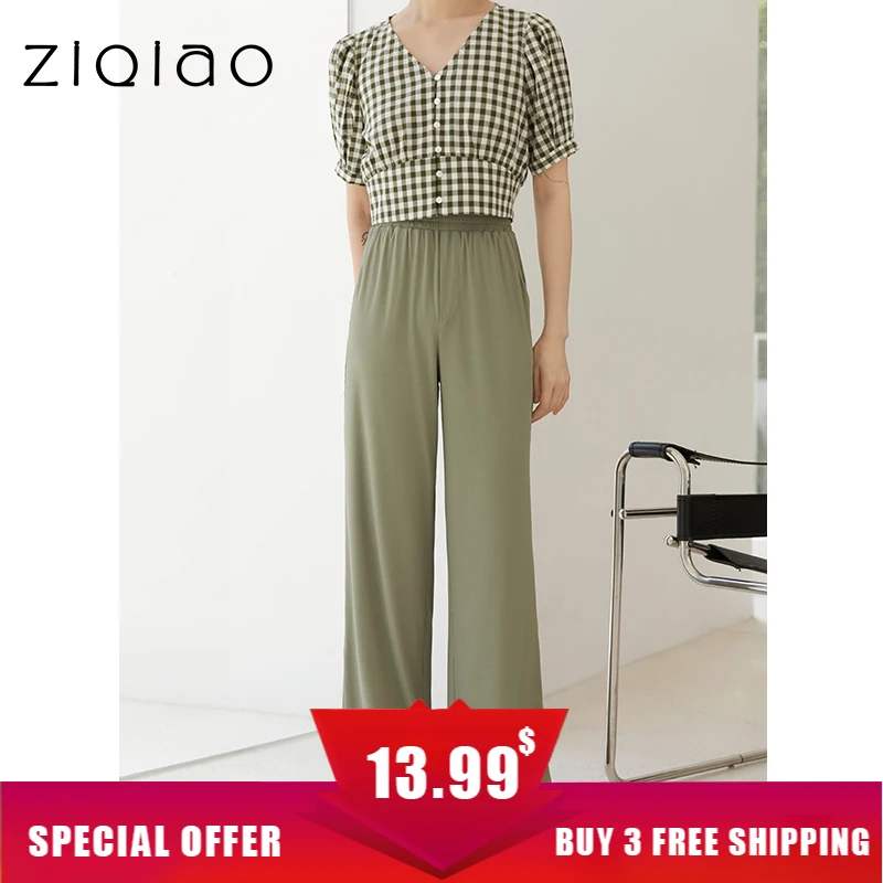ZIQIAO, Японские Женские однотонные прямые брюки, укороченные брюки...