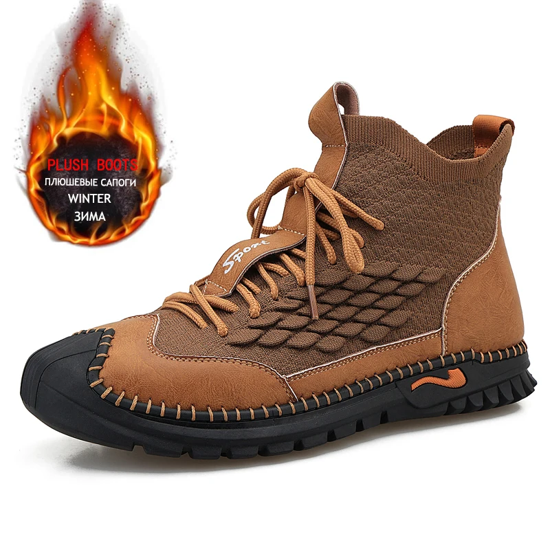 Зимние мужские ботинки для снега, теплые плюшевые уличные зимние бо...
