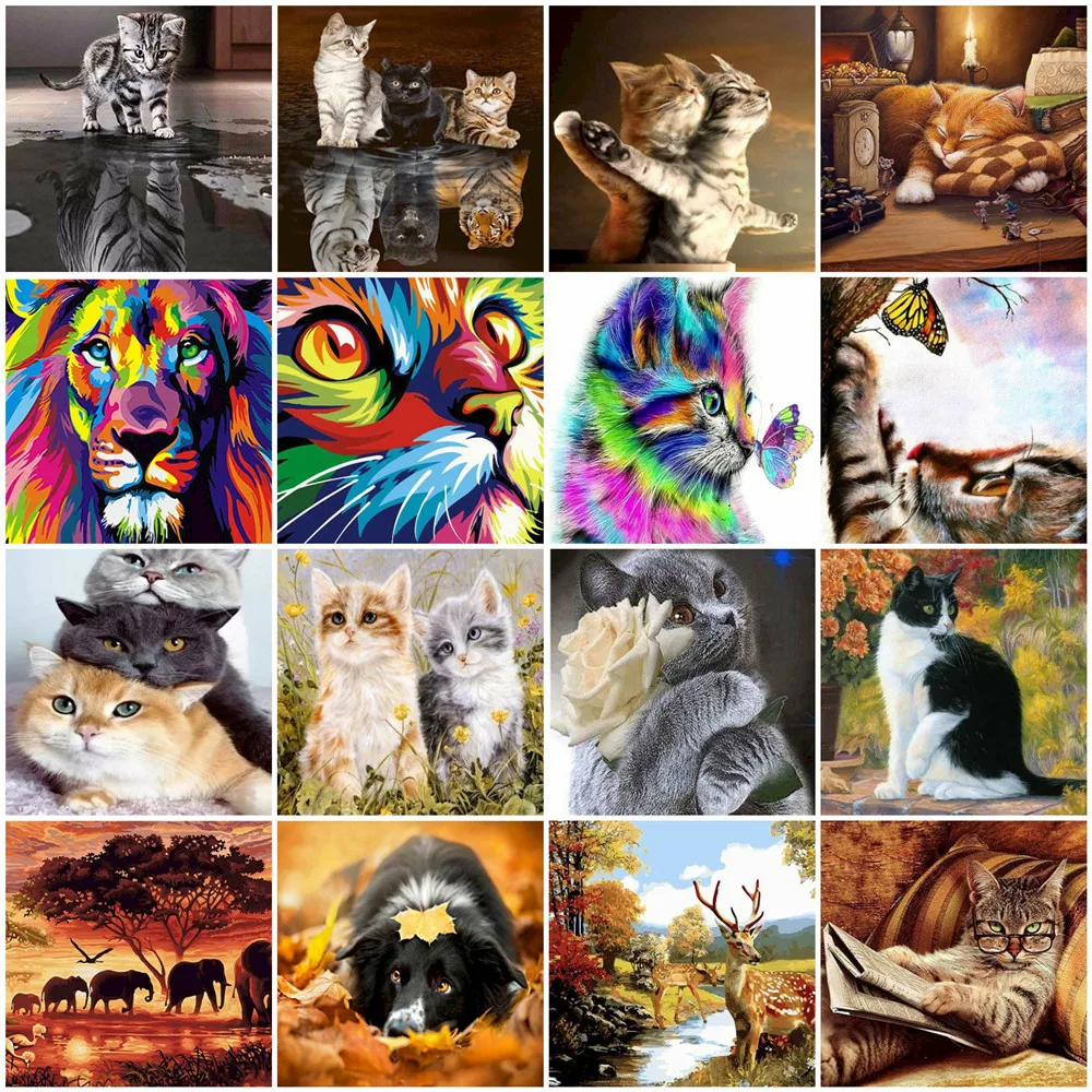 HUACAN живопись маслом по номерам кошка животные наборы для взрослых ручная роспись DIY раскраска по номеру Лев украшение дома 60х75см