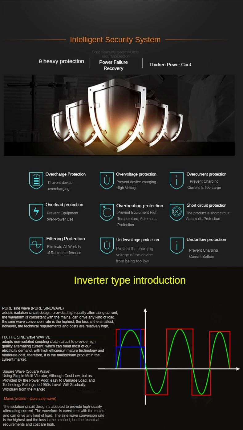 Инвертор Тан 3rd поколение серии 500W (черный/желтый опционально) 12V постоянного тока до 220V, 12V постоянного тока до 110 V500W