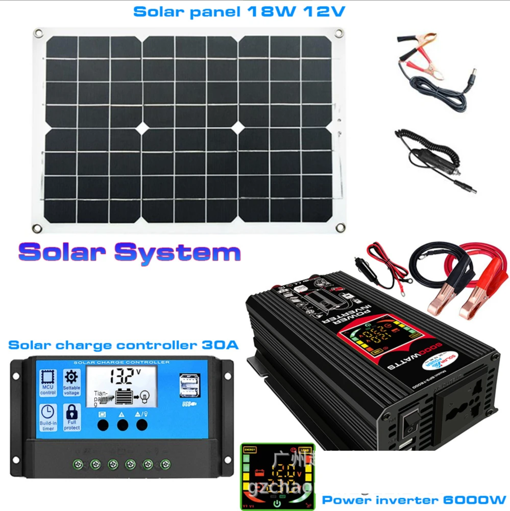 Полный набор бытовых инверторов 110 В220 В, контроллер 500 Вт, фотоэлектрическая панель 30 А, 18 Вт, система солнечной энергии