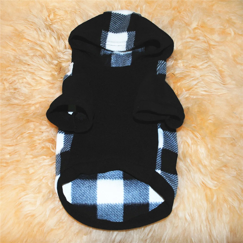 Зимнее пальто для собак, толстая флисовая толстовка с капюшоном для собак, красная и черная клетчатая теплая одежда для домашних питомцев, ветрозащитный жилет для маленьких щенков