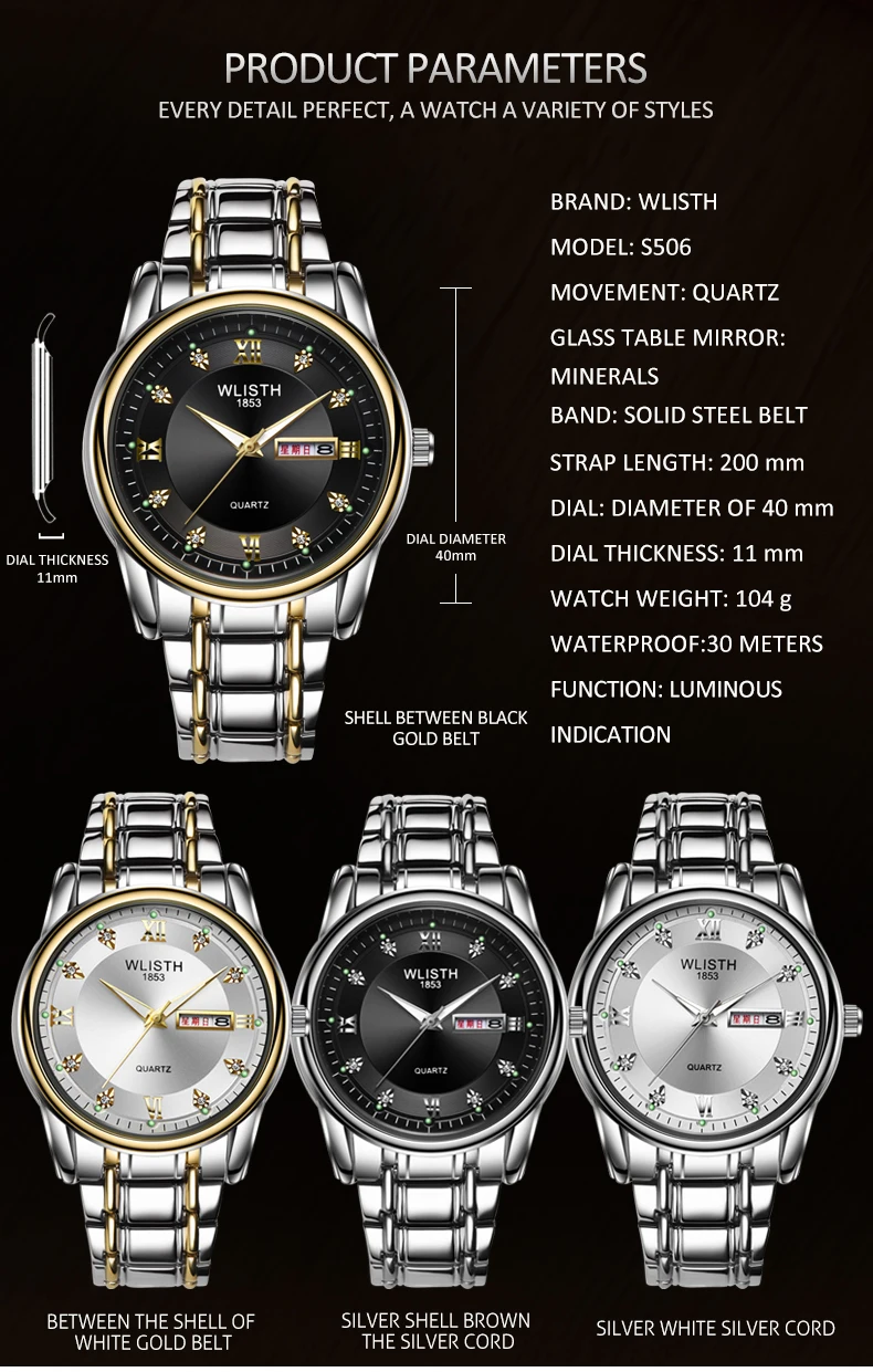 Часы наручные WLISTH Мужские кварцевые, брендовые Роскошные модные ...