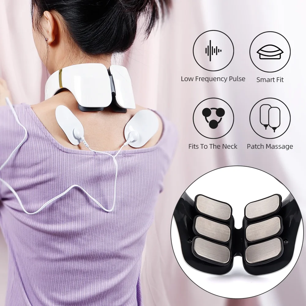 Умный массажер для шеи NICARE, 6-зонный шейный позвоночник, расслабление мышц спины, Электрический импульсный массажер для облегчения боли в плечах