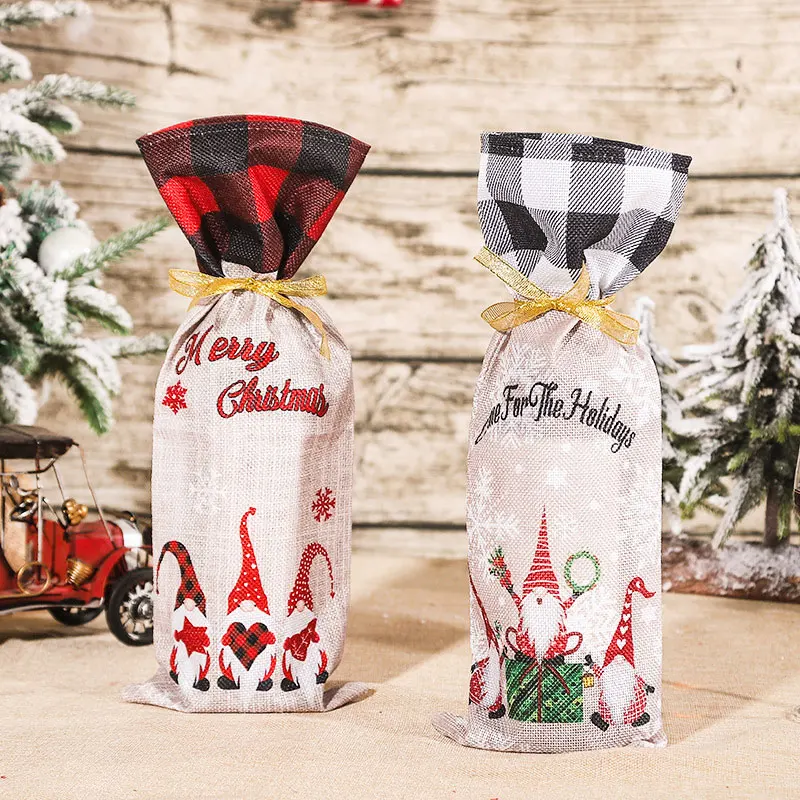 Рождественские подарочные пакеты, держатель для бутылки вина, пылез...