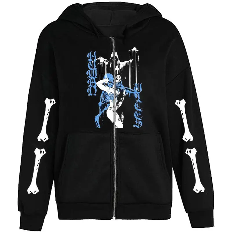 Y2K свитшот в готическом стиле bergroen Женская толстовка с капюшон...