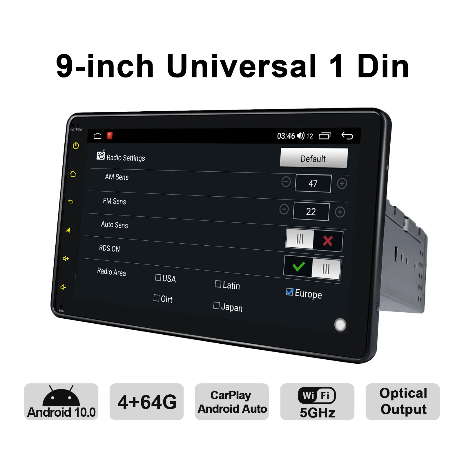 Авторадио Android 1 din радио с экраном 9 дюймов универсальная Центральная мультимедийная аудиосистема GPS беспроводной Carplay 4G Автомобильный навигатор
