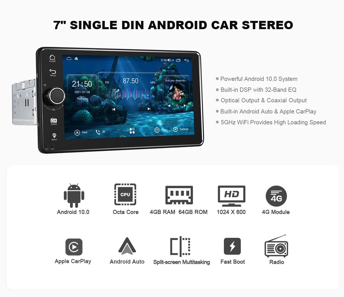 Автомагнитола на Android, универсальный стереоприемник, 1 Din, DVD, головное устройство, центральный мультимедийный плеер, Apple Carplay, Android, авто