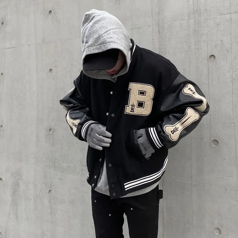 Куртка-бомбер HOUZHOU мужская с пушистыми вставками, уличная одежда в стиле хип-хоп, бейсбольная куртка в стиле пэчворк, осень
