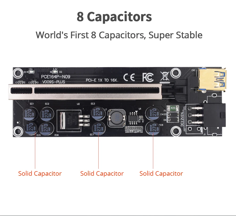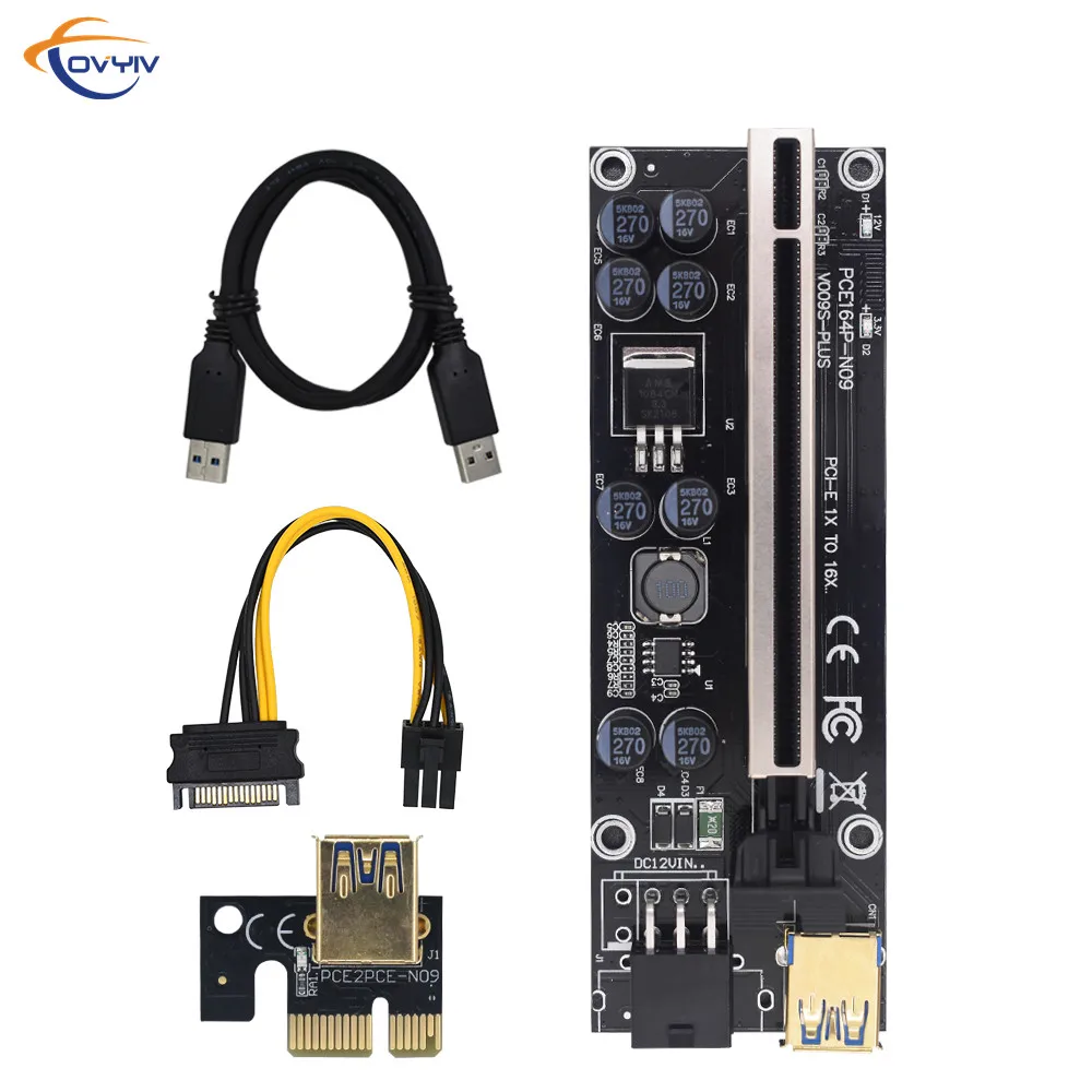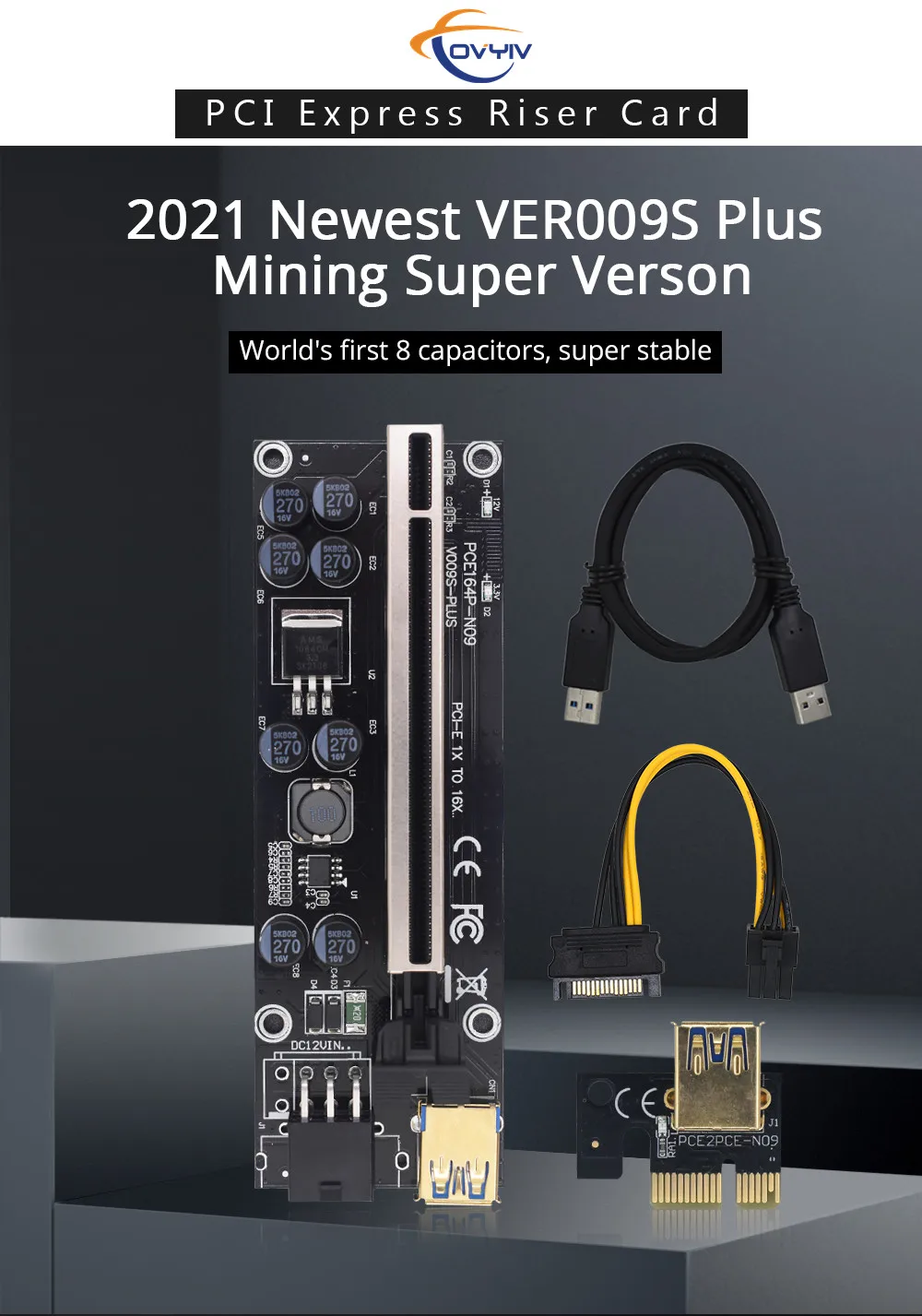 Переходник COVYIV 009s Plus PCI-E Riser PCIE PCI E Express Card GPU 1X to X16 USB 3,0 6pin SATA, переходник для майнинга BTC