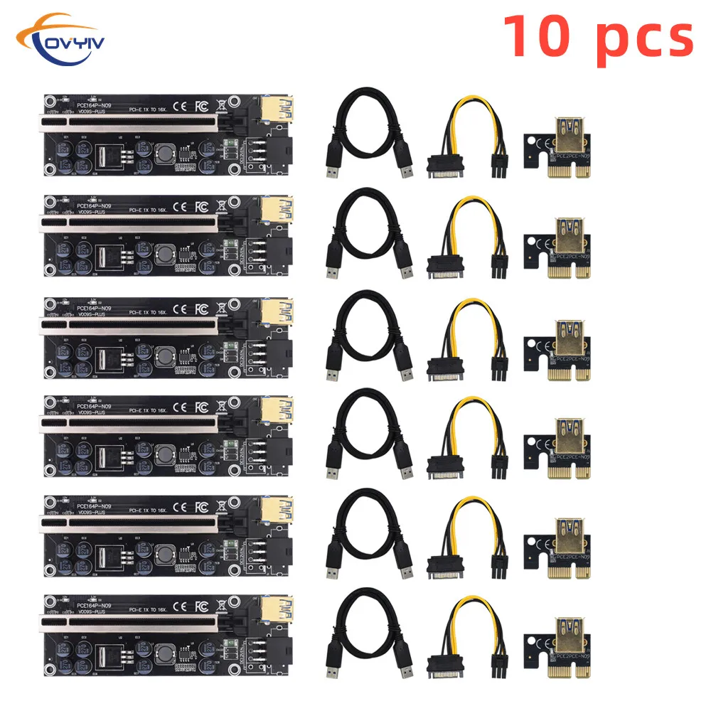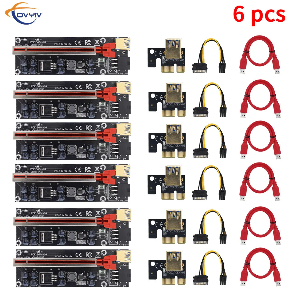 TISHRIC 6 шт. VER009S Plus Райзер-карта PCI 6Pin 009S Майнер для ма...