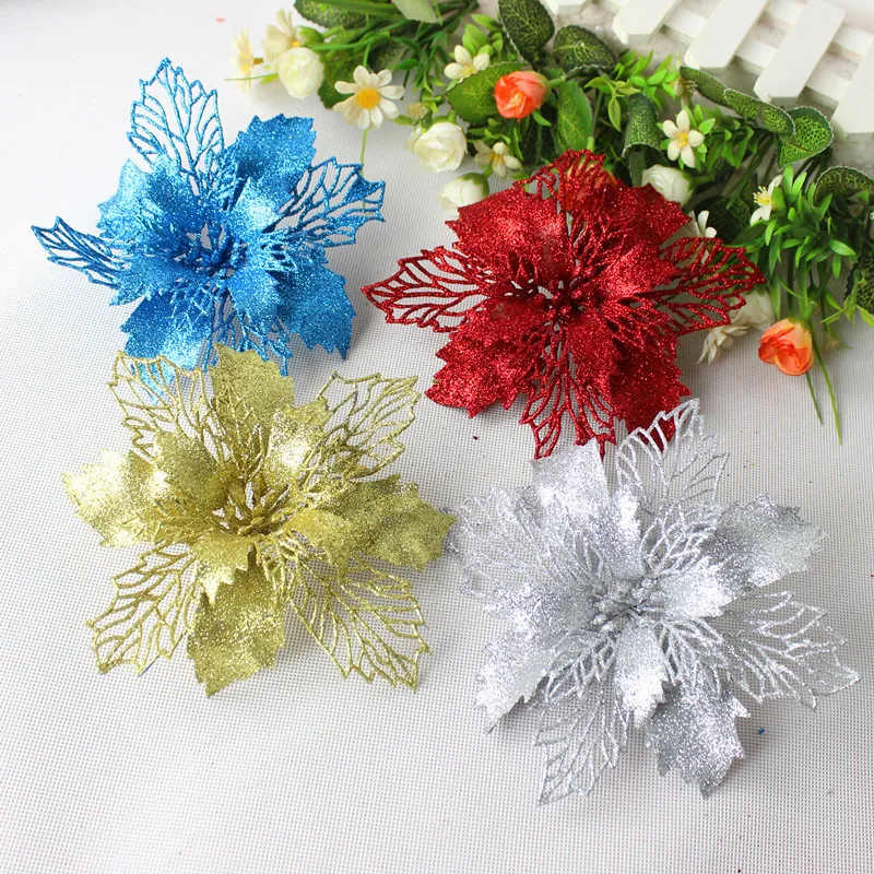 Рождественские искусственные цветы, блестящие искусственные цветы, ...