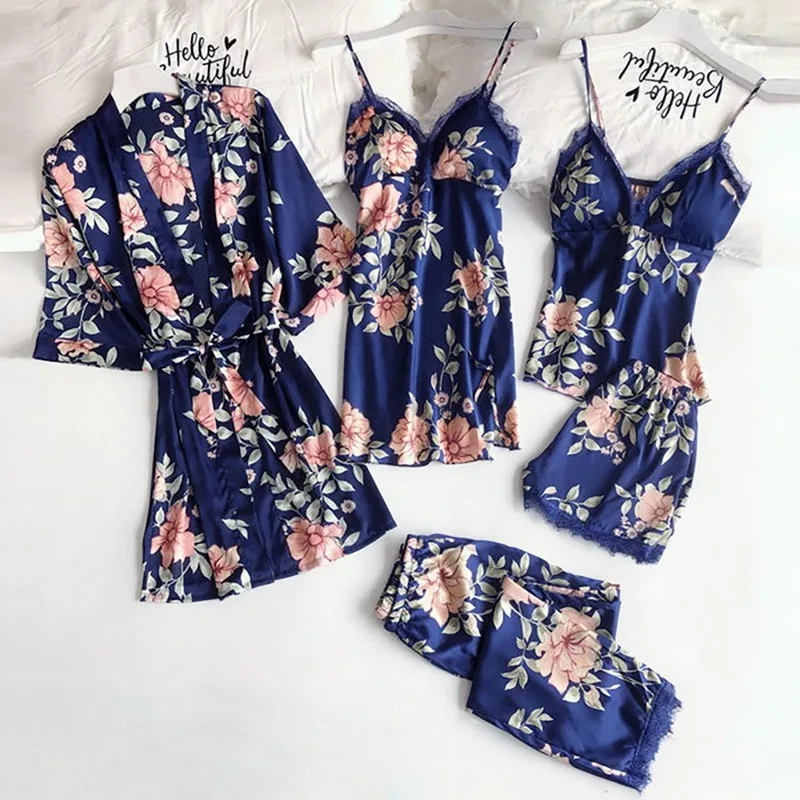 5 шт. женский Атласный халат, халат, брюки, шорты, ночная рубашка, ...