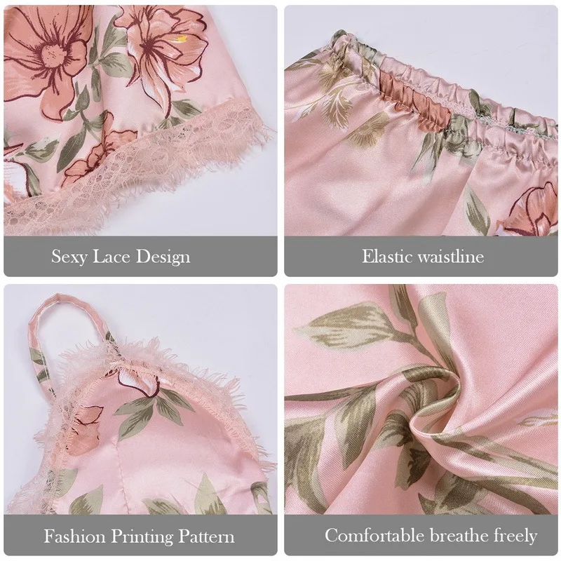 Пикантная кружевная Пижама с цветочным принтом 5 шт., женский костю...