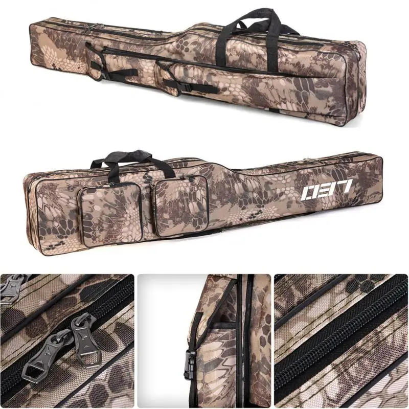 Простая и устойчивая концепция дизайна, выбранные кожаные украшения и подкладка мешка для удочки добавляются амортизирующие материалы, которые играют хорошую роль в защите хранимых удочек и небольших аксессуаров.