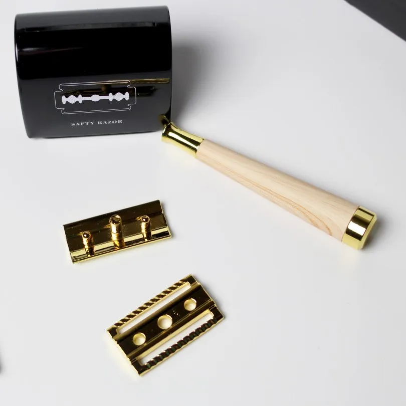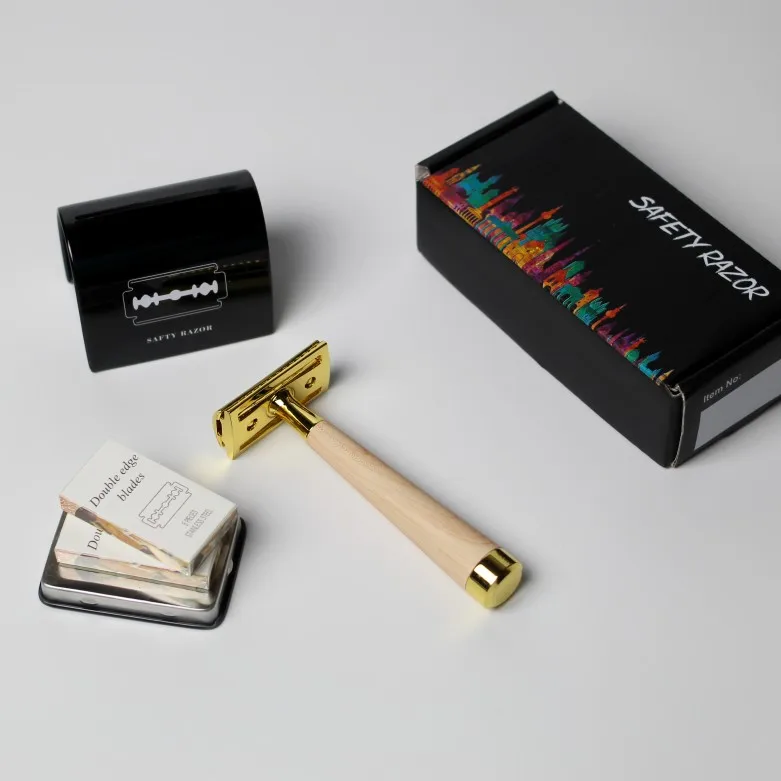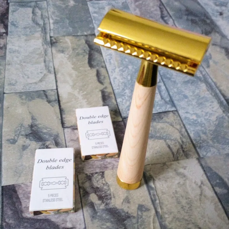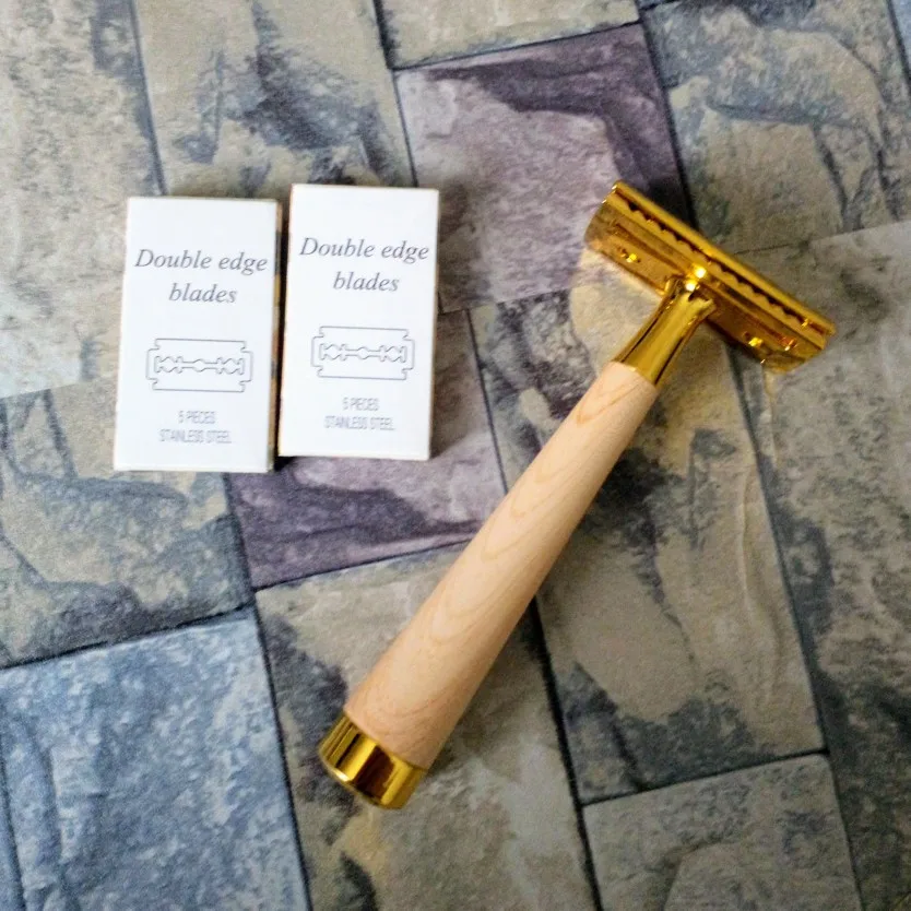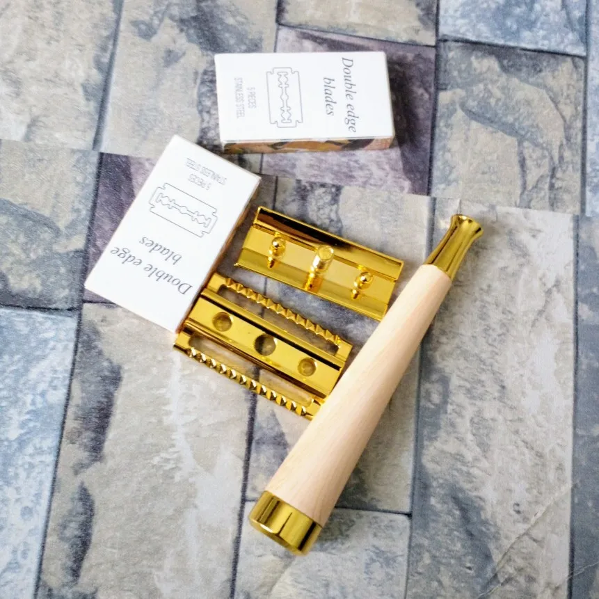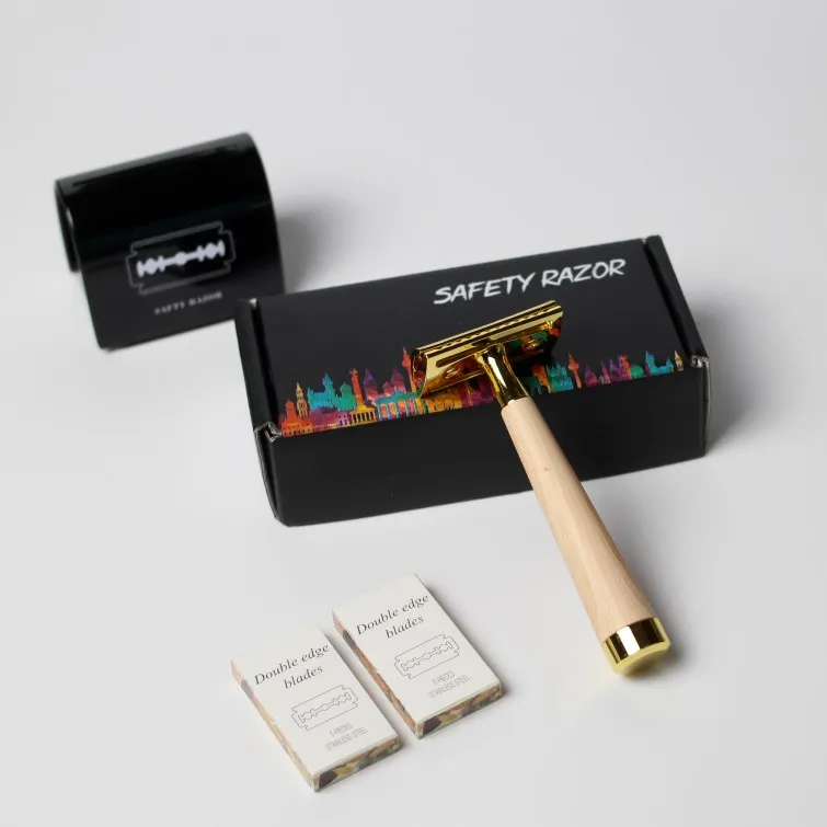 Двойная Безопасная бритва с имитацией кленовой деревянной ручки с нулевыми отходами, многоразовая Безопасная бритва для мужчин и женщин и мужчин с 10 лезвиями для бритья