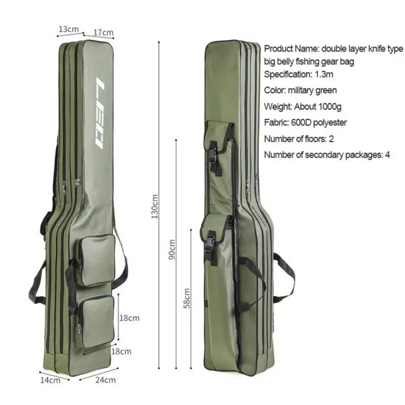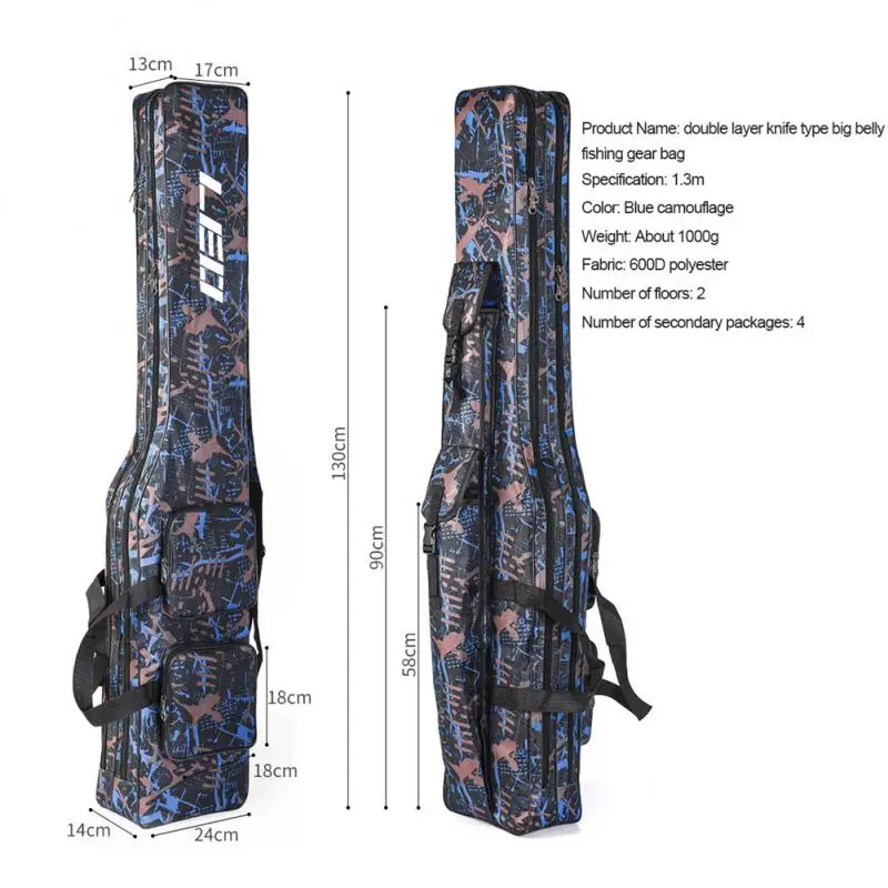 Простая и устойчивая концепция дизайна, выбранные кожаные украшения и подкладка мешка для удочки добавляются амортизирующие материалы, которые играют хорошую роль в защите хранимых удочек и небольших аксессуаров.