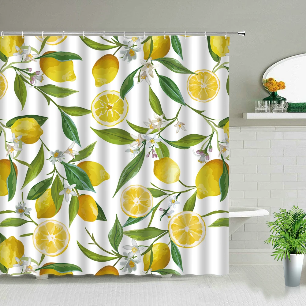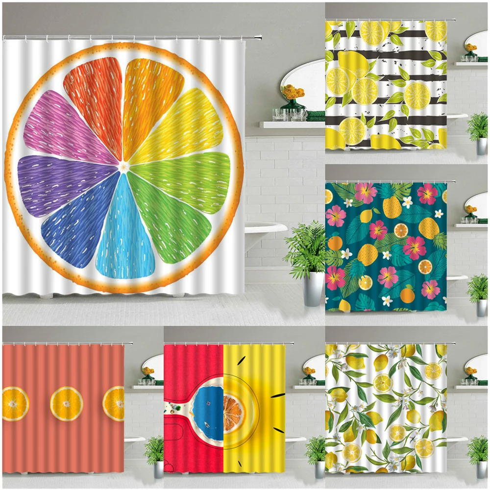 Занавески для душа с изображением фруктов, растений, лимона, апельсина, водонепроницаемые занавески для ванной из полиэстера, экран для ванны, домашний декор для ванной