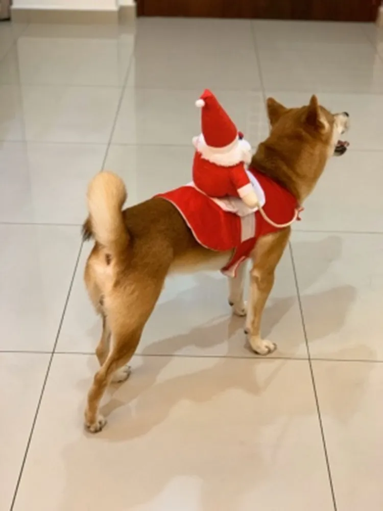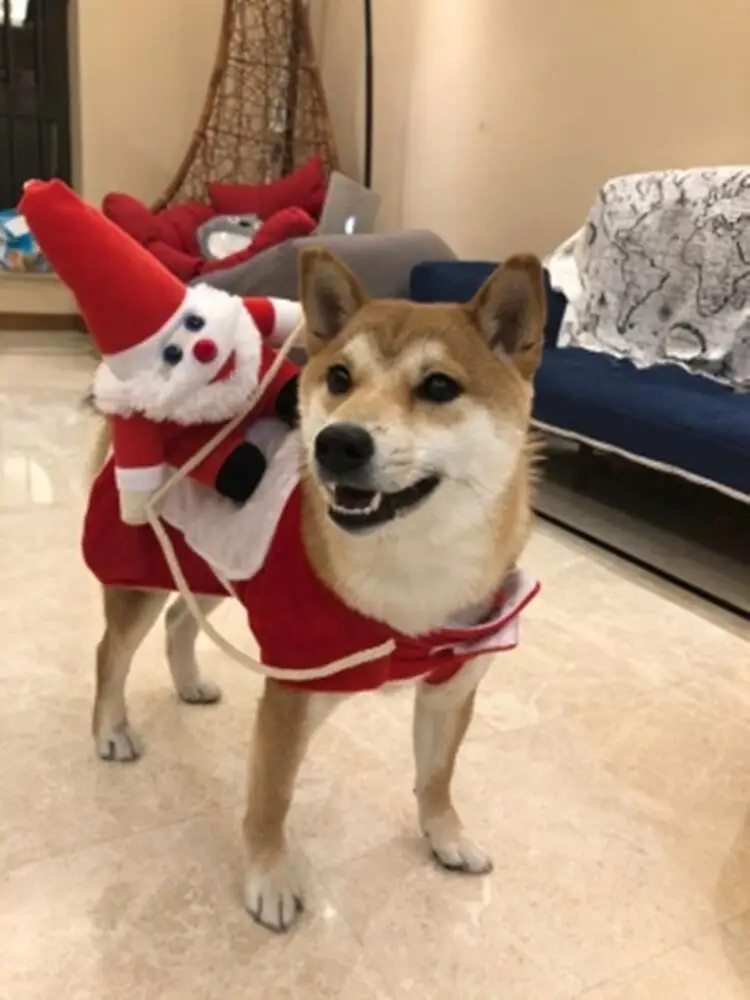 Одежда для домашних животных; Рождественский костюм ковбоя для верховой езды; Забавный костюм Санта-Клауса для собак; Новинка; Костюм Чихуахуа для костюмированной вечеринки; Одежда для кошек