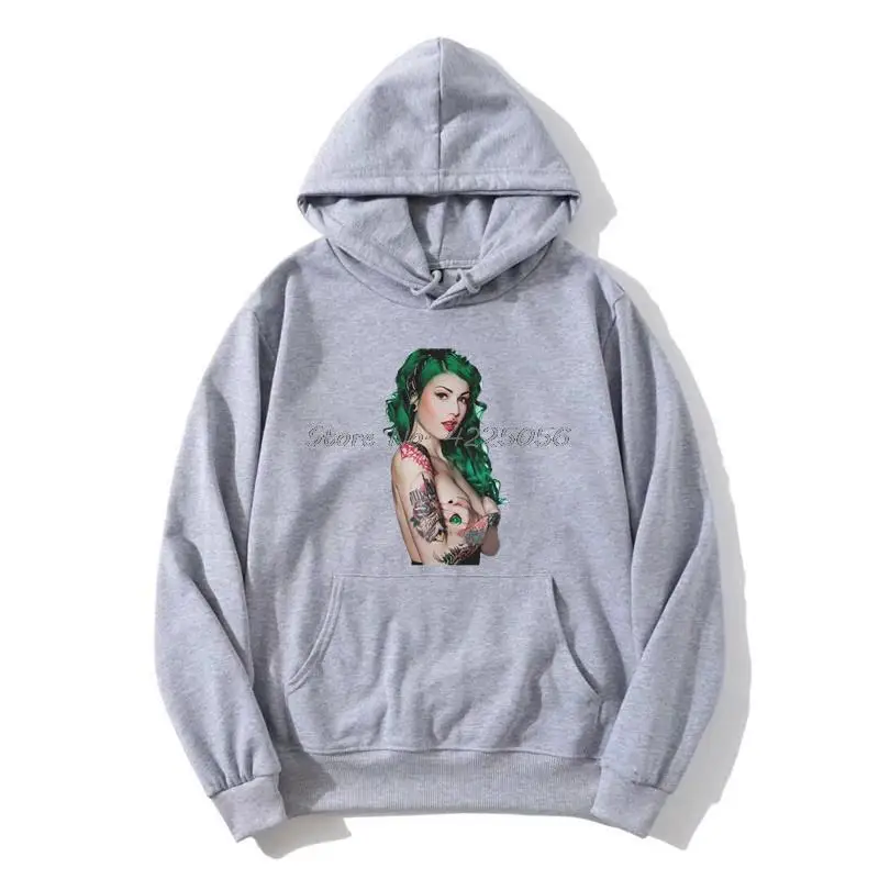 Худи женское с капюшоном и татуировкой на зеленых волосах