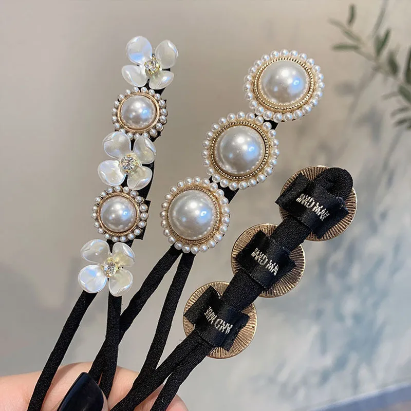 Новые жемчужные Волшебные булочки для волос, обручи для волос с жемчужинами и цветами, модные обручи для волос, сделай сам, аксессуары для волос