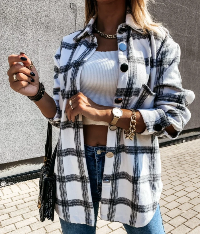 Женское пальто 2021, модный Женский Повседневный Кардиган в клетку ...