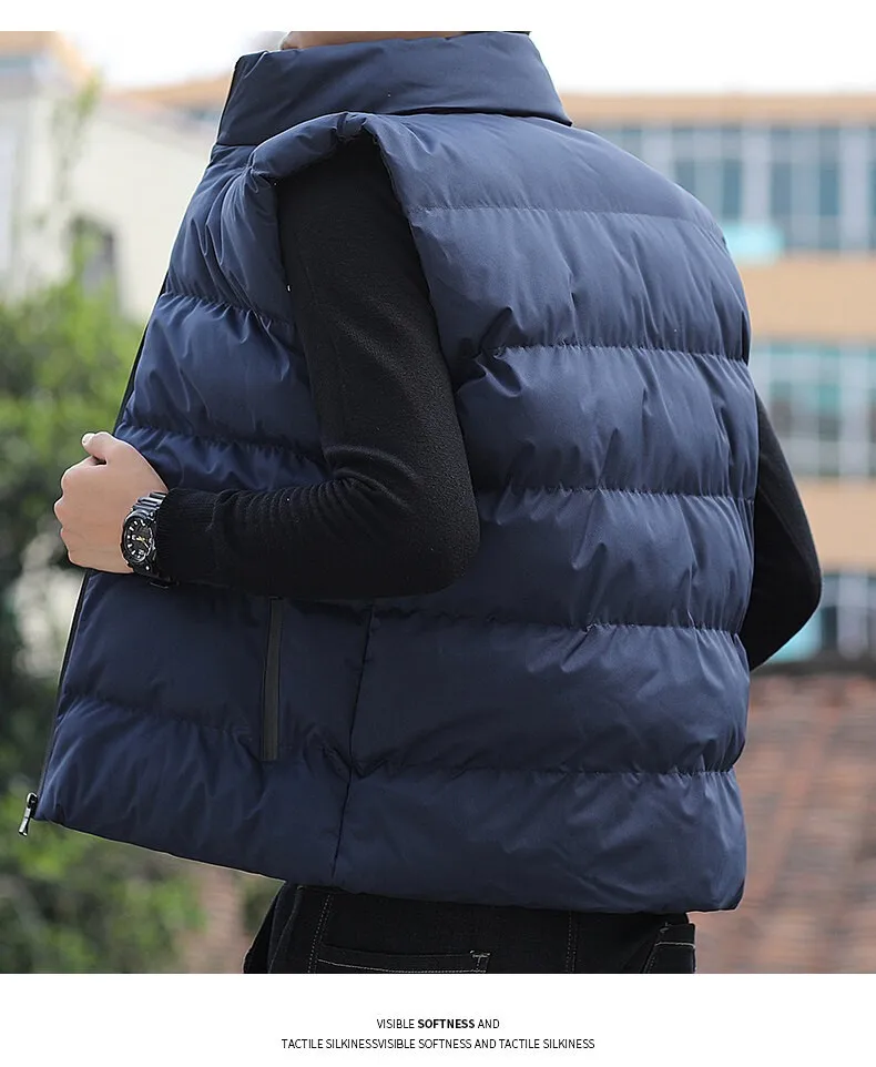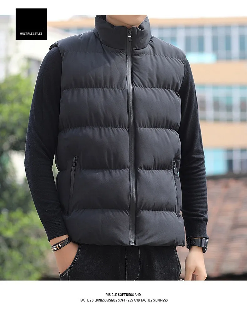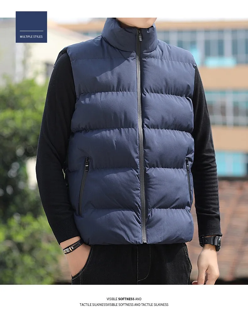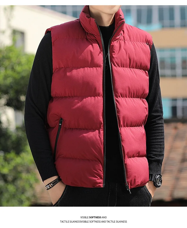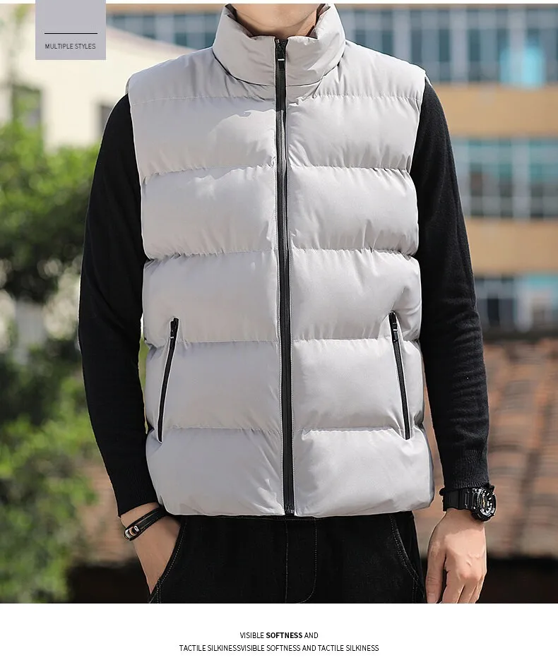 Мужской ветрозащитный жилет, Приталенный жилет без рукавов, с воротником-стойкой, для осени и зимы, 2021