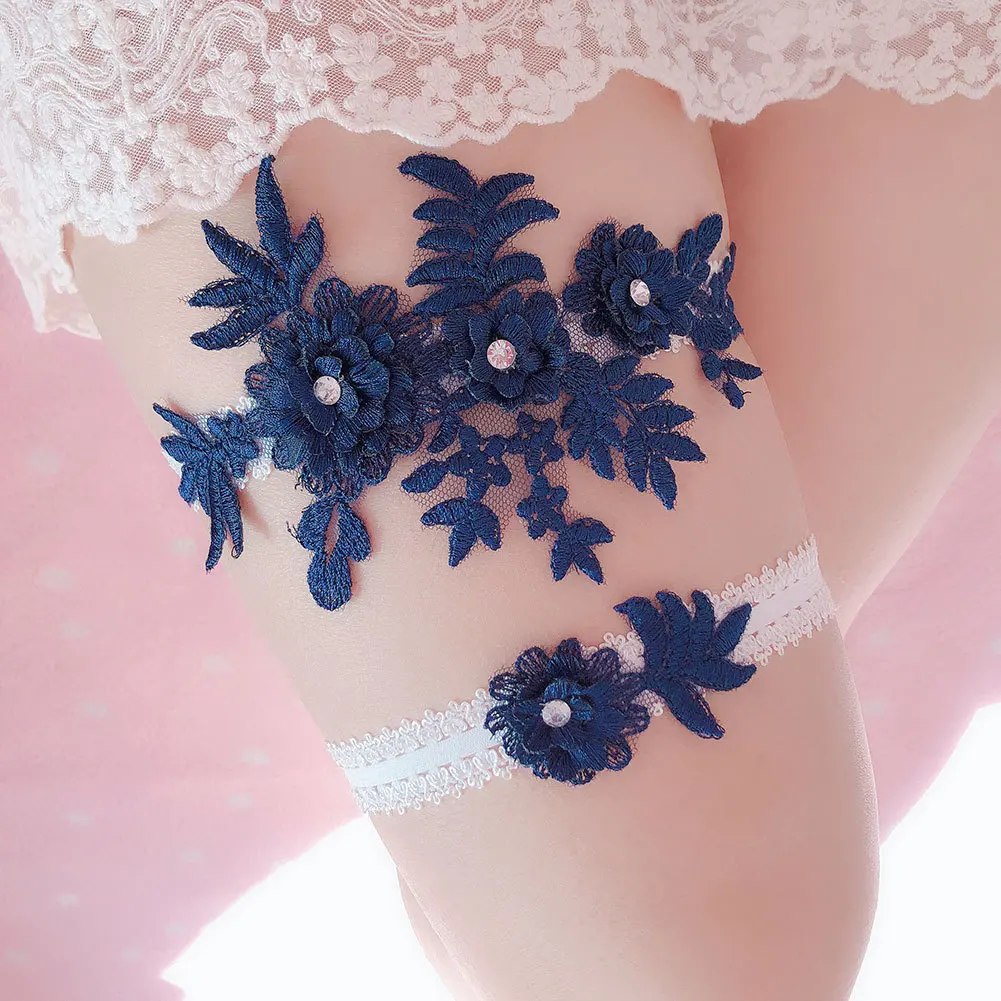 Синие кружевные свадебные подвязки с цветочным рисунком, свадебные ...