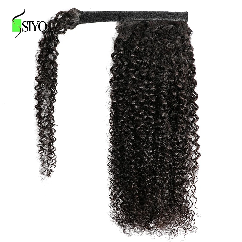 SIYO афро кудрявые волосы на шнурке для конского хвоста 100% Реми п...