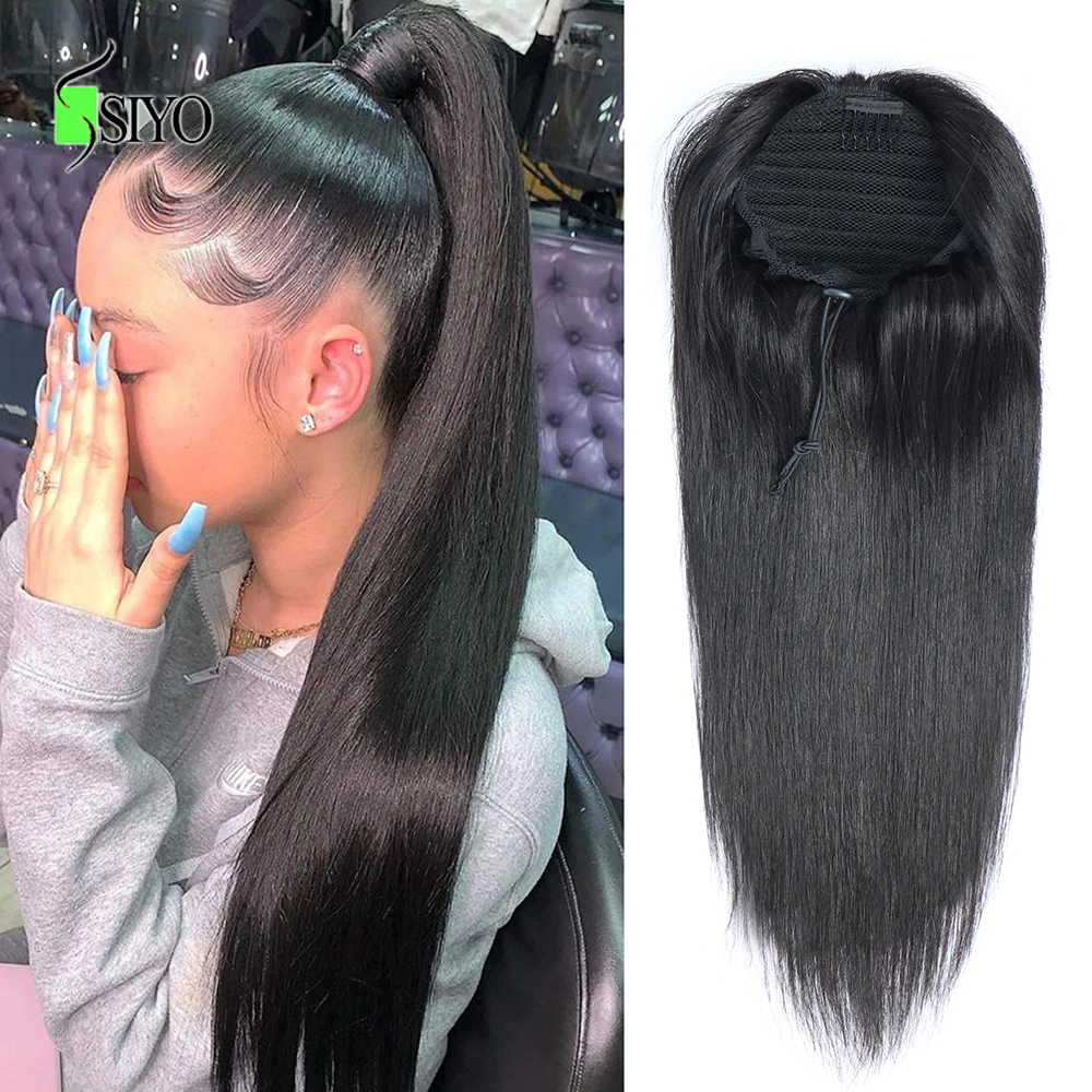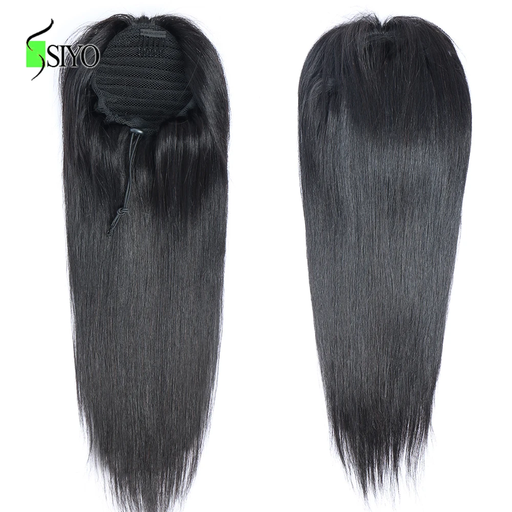 Siyo, человеческие волосы для конского хвоста, бразильские прямые в...