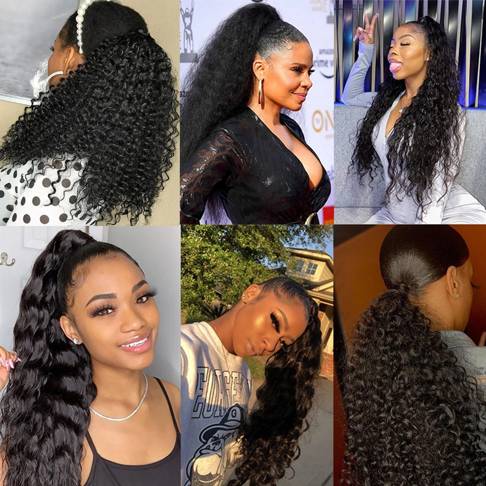 Siyo, курчавые прямые человеческие волосы для конского хвоста, браз...