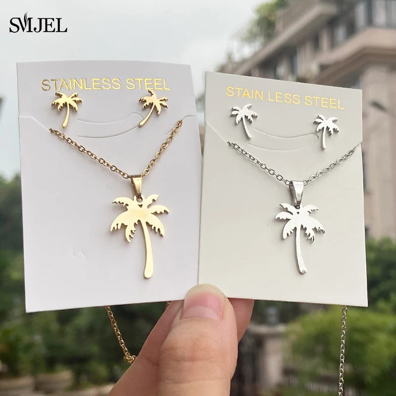 Новое ожерелье из нержавеющей стали с кокосовой пальмой для женщин, ожерелья для влюбленных, Гавайский пляж, Пальма серьги в виде дерева, ювелирные изделия для помолвки, подарки