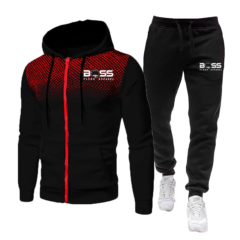 Костюм спортивный Мужской флисовый, толстовка с капюшоном и штаны, на молнии, с принтом, брендовая одежда для бега, Осень-зима
