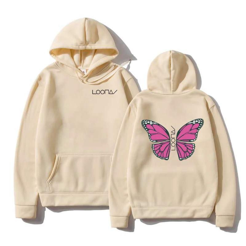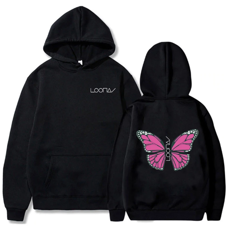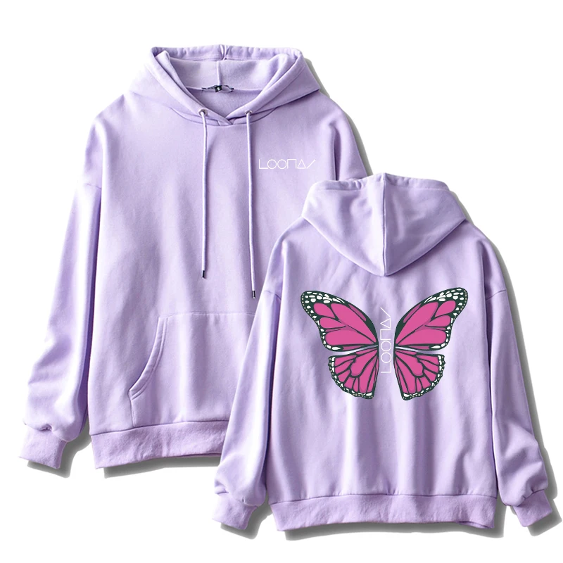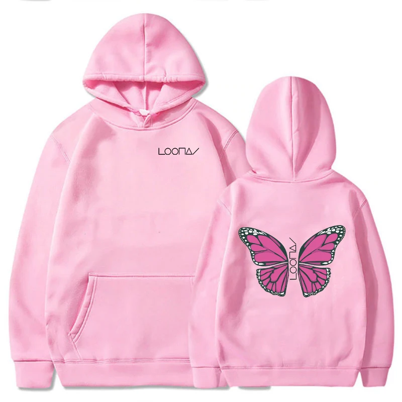 KPOP LOONA Harajuku эстетичные розовые бабочки графика толстовки в Корейском стиле женские Поклонники с длинным рукавом Уличная одежда зимние свитшоты
