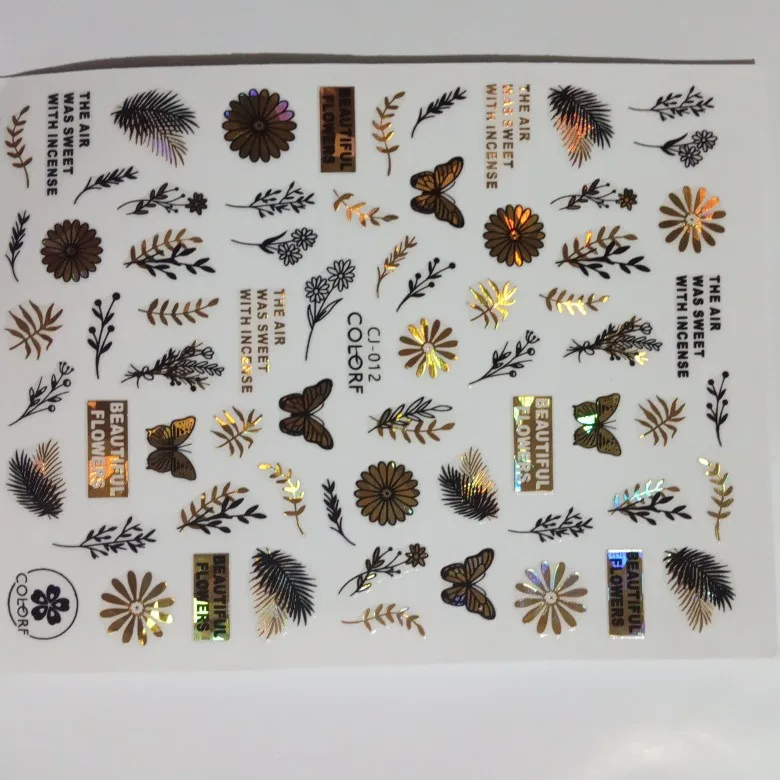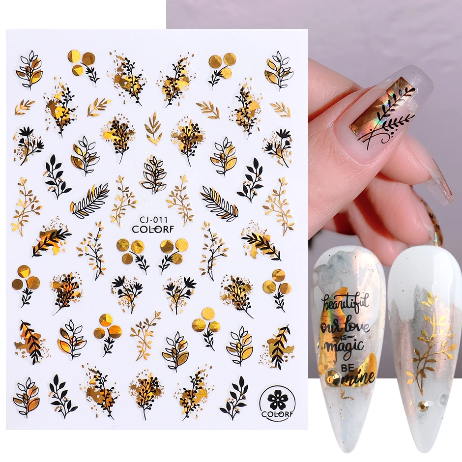 Голографические наклейки для ногтей в виде листьев и клена, 3D лазерные наклейки для дизайна ногтей с золотом, осенью, цветами, листьями, абстрактом, лицевой декоративный слайдер для творчества