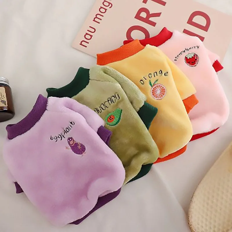 Разноцветная Теплая Флисовая одежда для домашних животных, милая куртка с принтом фруктов, Тедди, флисовая зимняя одежда, товары для домашних животных